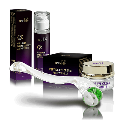 Cumpărați 2 produse: Esență facială antirid cu colagen + Cremă antirid cu peptide pentru ochi – primiți rola de masaj Mezoroller GRATUIT!