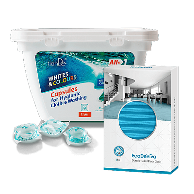 Rapid și fără efort – așa funcționează spălarea și curățarea cu produsele TianDe! Capsulele pentru spălarea igienică a hainelor cu enzime moderne oferă o putere de curățare și o eficiență ridicată chiar și la temperaturi scăzute, plus o ofertă excelentă! Primiți o lavetă dublu-adezivă pentru podele la achiziție! Fabricată din super-microfibră, absoarbe și reține perfect murdăria, nu lasă reziduuri și este potrivită pentru toate tipurile de pardoseli.